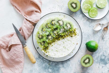 Veganer No Bake Kokos-Limettenkuchen mit Kiwi