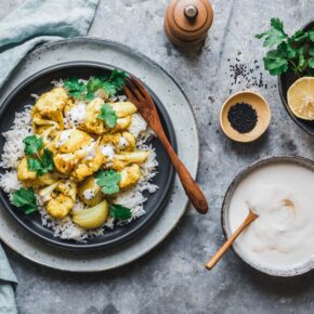 Gerösteter Curry-Blumenkohl mit frischer Zitronen-Raita
