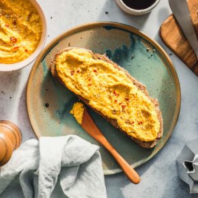 Unser Kürbisaufstrich ist leicht rauchig, mit leckerem Hokkaidokürbis, weißen Bohnen, Sonnenblumenkernen, geröstetem Sesam und einem Hauch Chiliflocken. Unser Herbstliebling!
