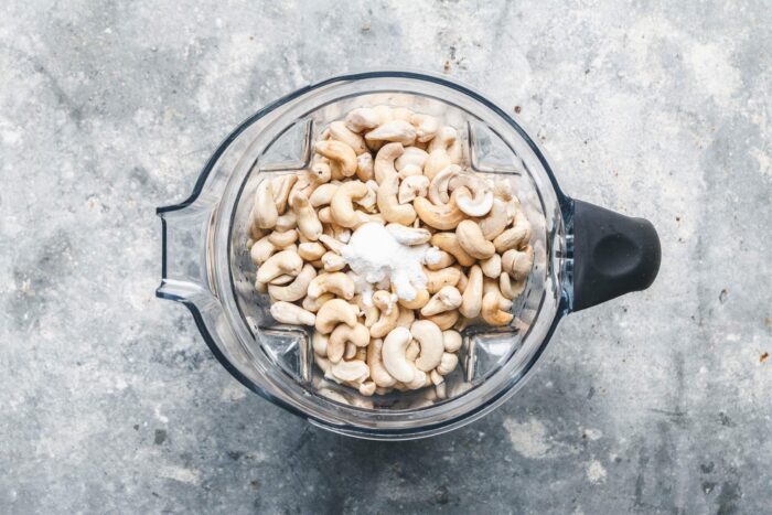 - Ein High-Speed-Blender ist zum Mixen der Cashew-Masse ein klarer Vorteil, aber es funktioniert auch in einem guten Haushaltsmixer.