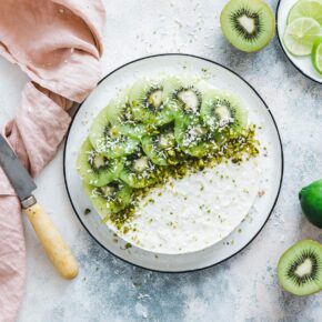 Veganer No Bake Kokos-Limettenkuchen mit Kiwi